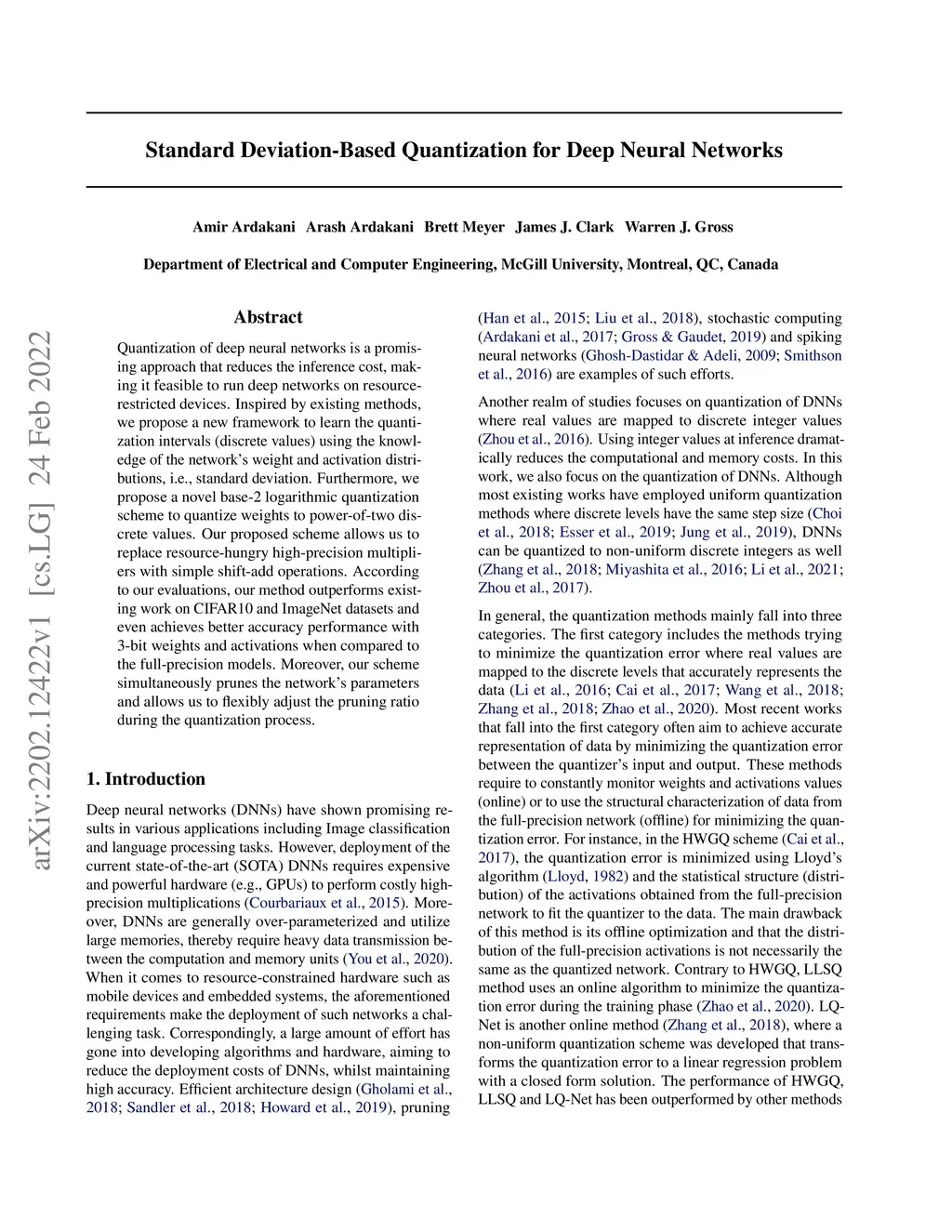 Standard Deviation-Based Quantization for Deep Neural Networks