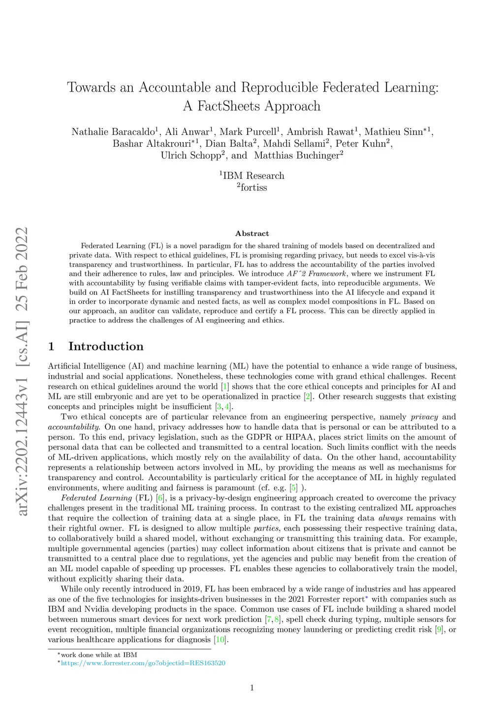Federated Learning (FL) is a novel paradigm for the shared training of models based on decentralized and private data. With respect to ethical guidelines, FL is promising regarding privacy, but needs to excel vis-\`a-vis transparency and trustworthiness. In particular, FL has to address the accountability of the parties involved and their adherence to rules, law and principles. We introduce AF^2 Framework, where we instrument FL with accountability by fusing verifiable claims with tamper-evident facts, into reproducible arguments. We build on AI FactSheets for instilling transparency and trustworthiness into the AI lifecycle and expand it to incorporate dynamic and nested facts, as well as complex model compositions in FL. Based on our approach, an auditor can validate, reproduce and certify a FL process. This can be directly applied in practice to address the challenges of AI engineering and ethics.