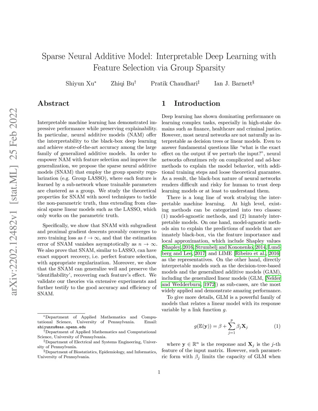 Sparse Neural Additive Model: Interpretable Deep Learning with Feature