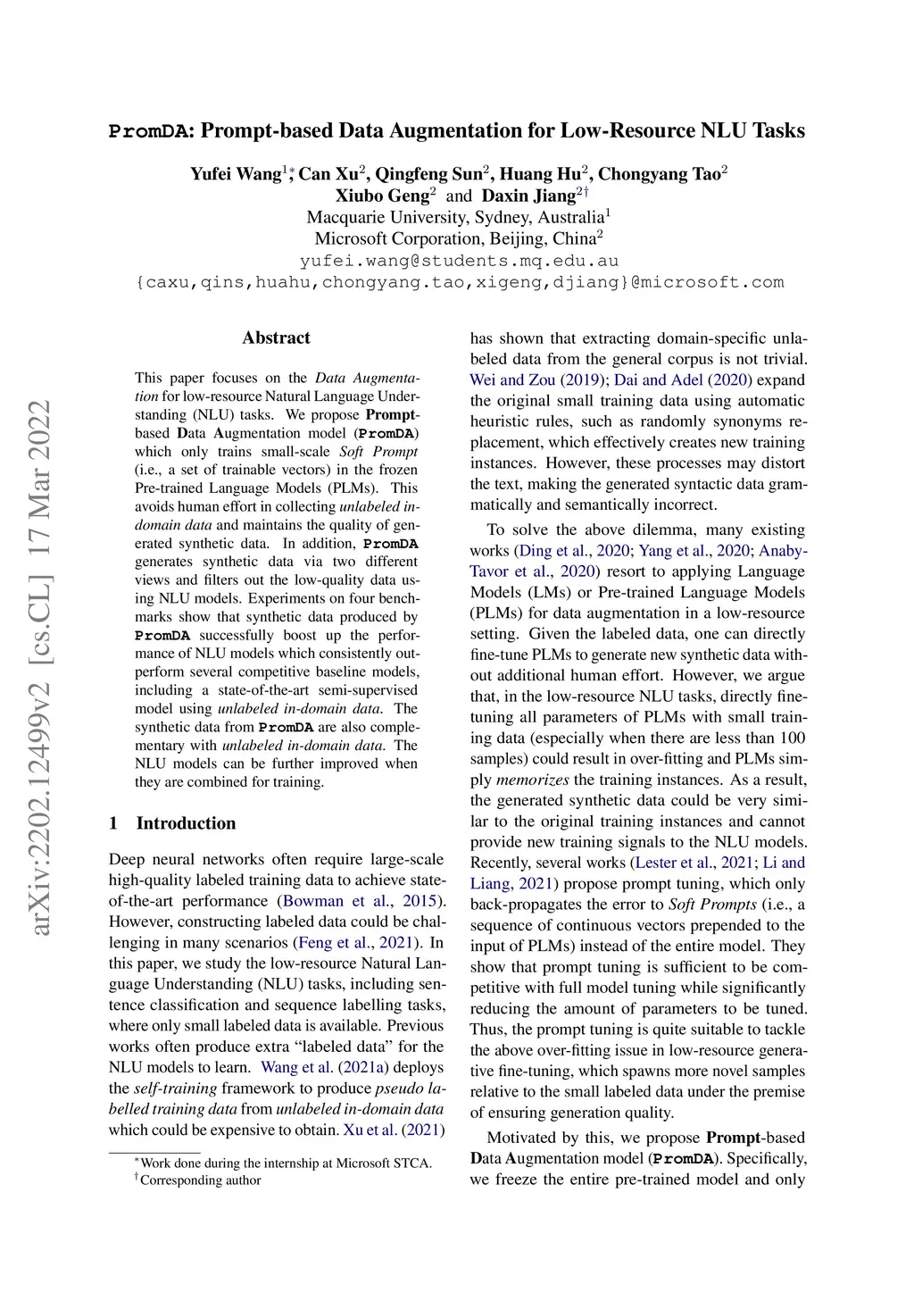 PromDA: Prompt-based Data Augmentation for Low-Resource NLU Tasks