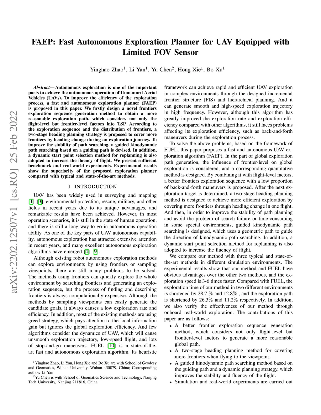 FAEP: Fast Autonomous Exploration Planner for UAV Equipped with Limited