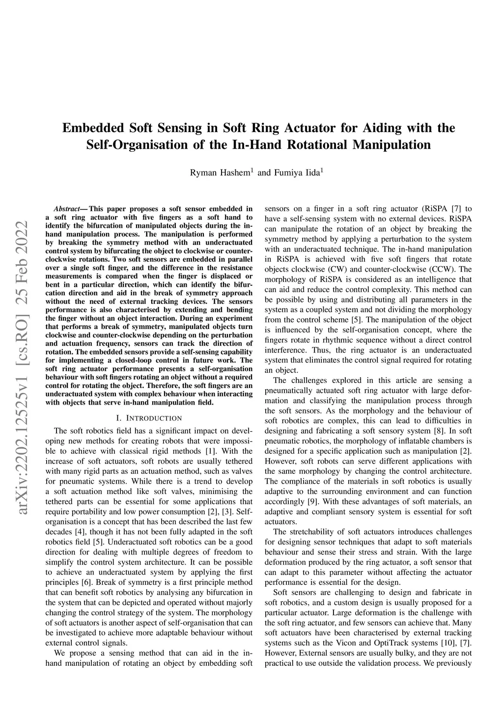 Embedded Soft Sensing in Soft Ring Actuator for Aiding with