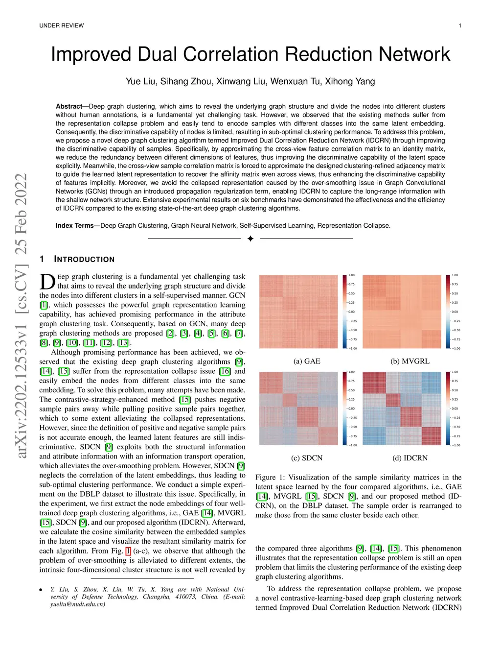 Deep graph clustering, which aims to reveal the underlying graph structure and divide the nodes into different clusters without human annotations, is a fundamental yet challenging task. However, we observed that the existing methods suffer from the representation collapse problem and easily tend to encode samples with different classes into the same latent embedding. Consequently, the discriminative capability of nodes is limited, resulting in sub-optimal clustering performance. To address this problem, we propose a novel deep graph clustering algorithm termed Improved Dual Correlation Reduction Network (IDCRN) through improving the discriminative capability of samples. Specifically, by approximating the cross-view feature correlation matrix to an identity matrix, we reduce the redundancy between different dimensions of features, thus improving the discriminative capability of the latent space explicitly. Meanwhile, the cross-view sample correlation matrix is forced to approximate the designed clustering-refined adjacency matrix to guide the learned latent representation to recover the affinity matrix even across views, thus enhancing the discriminative capability of features implicitly. Moreover, we avoid the collapsed representation caused by the over-smoothing issue in Graph Convolutional Networks (GCNs) through an introduced propagation regularization term, enabling IDCRN to capture the long-range information with the shallow network structure. Extensive experimental results on six benchmarks have demonstrated the effectiveness and the efficiency of IDCRN compared to the existing state-of-the-art deep graph clustering algorithms.