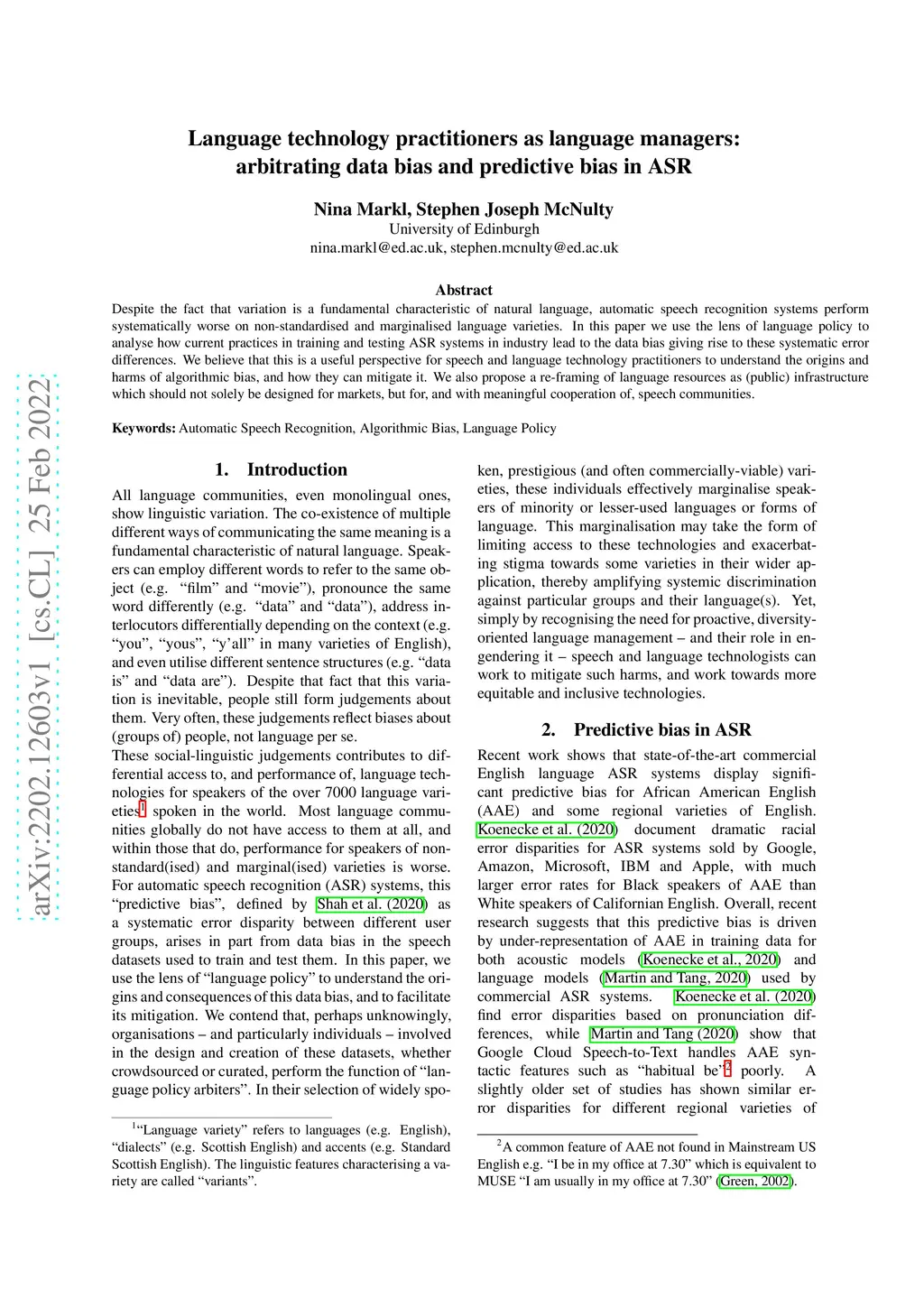 Despite the fact that variation is a fundamental characteristic of natural language, automatic speech recognition systems perform systematically worse on non-standardised and marginalised language varieties. In this paper we use the lens of language policy to analyse how current practices in training and testing ASR systems in industry lead to the data bias giving rise to these systematic error differences. We believe that this is a useful perspective for speech and language technology practitioners to understand the origins and harms of algorithmic bias, and how they can mitigate it. We also propose a re-framing of language resources as (public) infrastructure which should not solely be designed for markets, but for, and with meaningful cooperation of, speech communities.