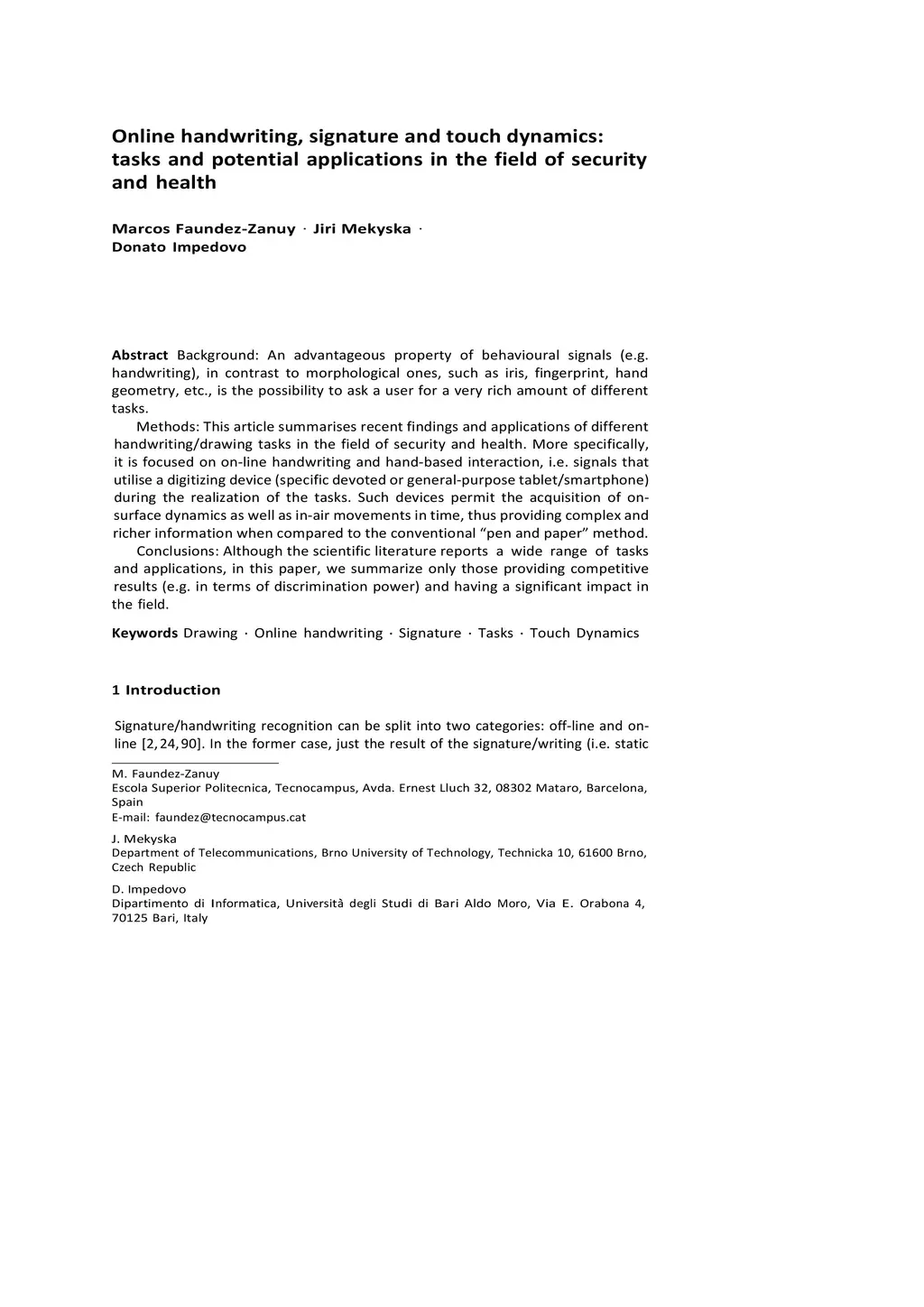 Online handwriting, signature and touch dynamics: tasks and potential