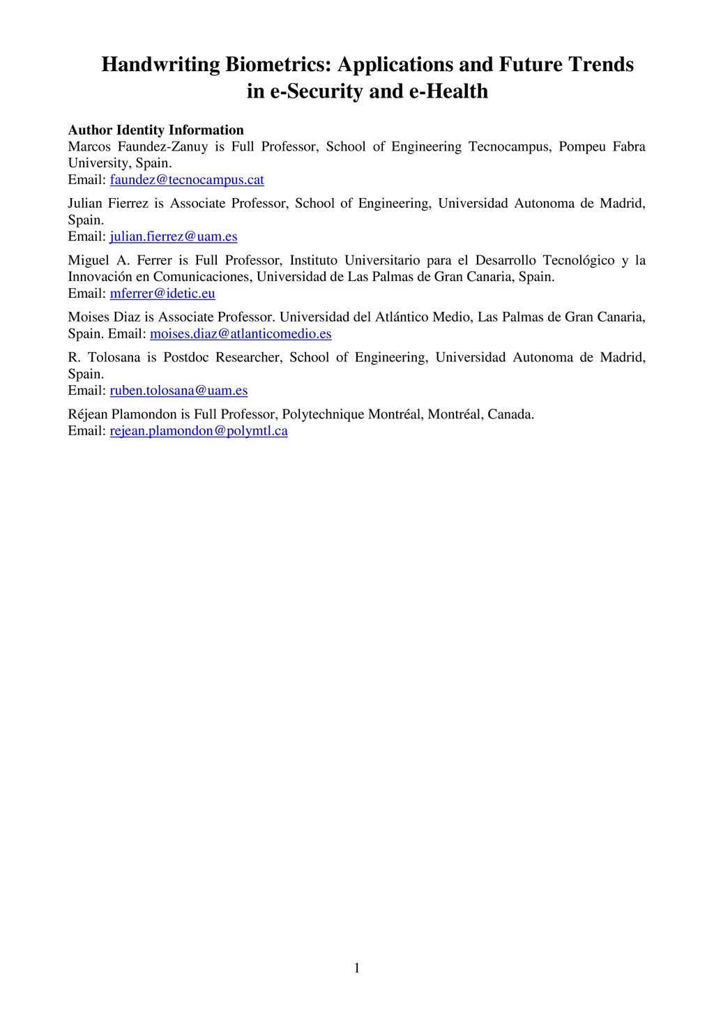 Handwriting Biometrics: Applications and Future Trends in e-Security and