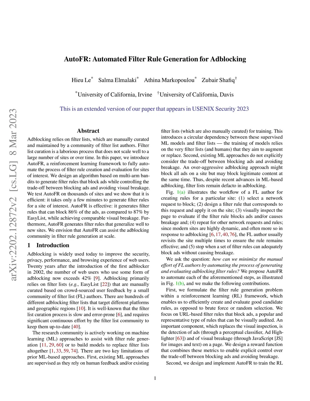 AutoFR: Automated Filter Rule Generation for Adblocking