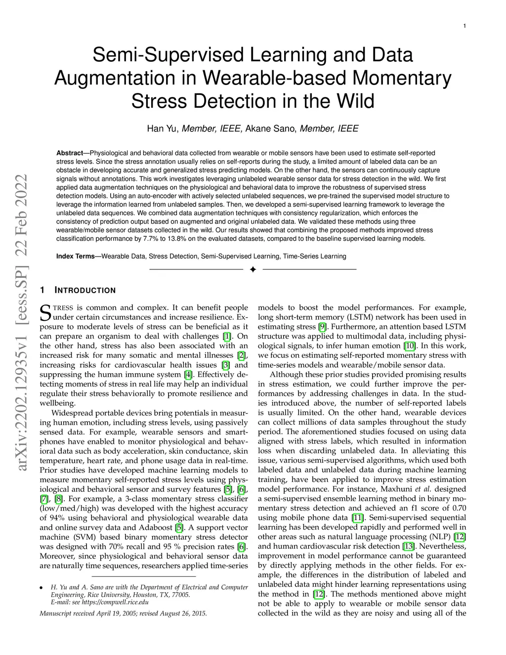 Semi-Supervised Learning and Data Augmentation in Wearable-based