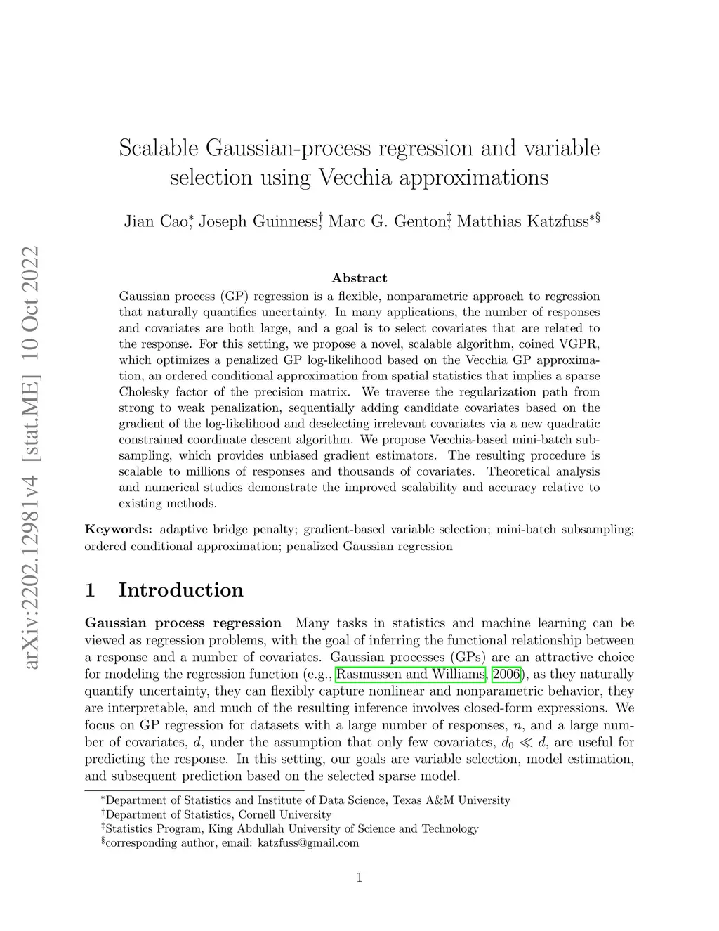 Scalable Gaussian-process regression and variable selection using