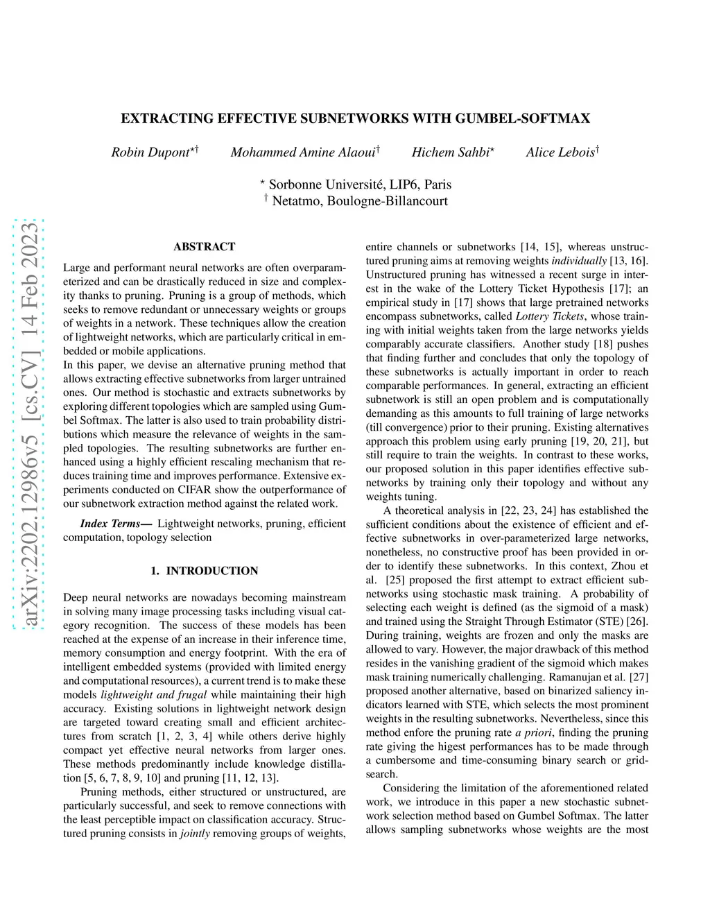 Extracting Effective Subnetworks with Gumbel-Softmax