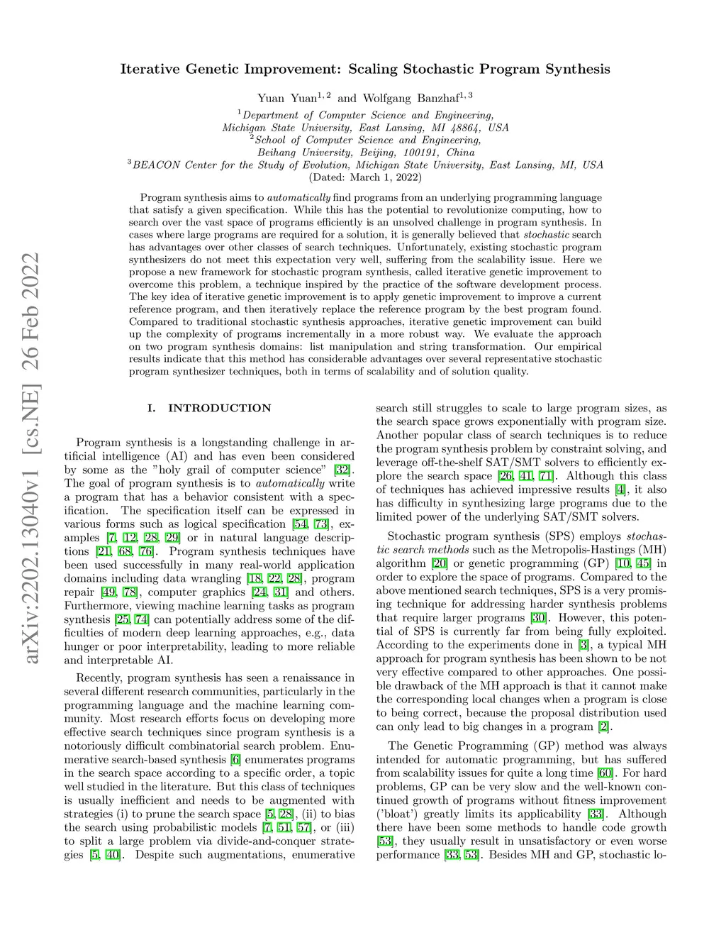Iterative Genetic Improvement: Scaling Stochastic Program Synthesis