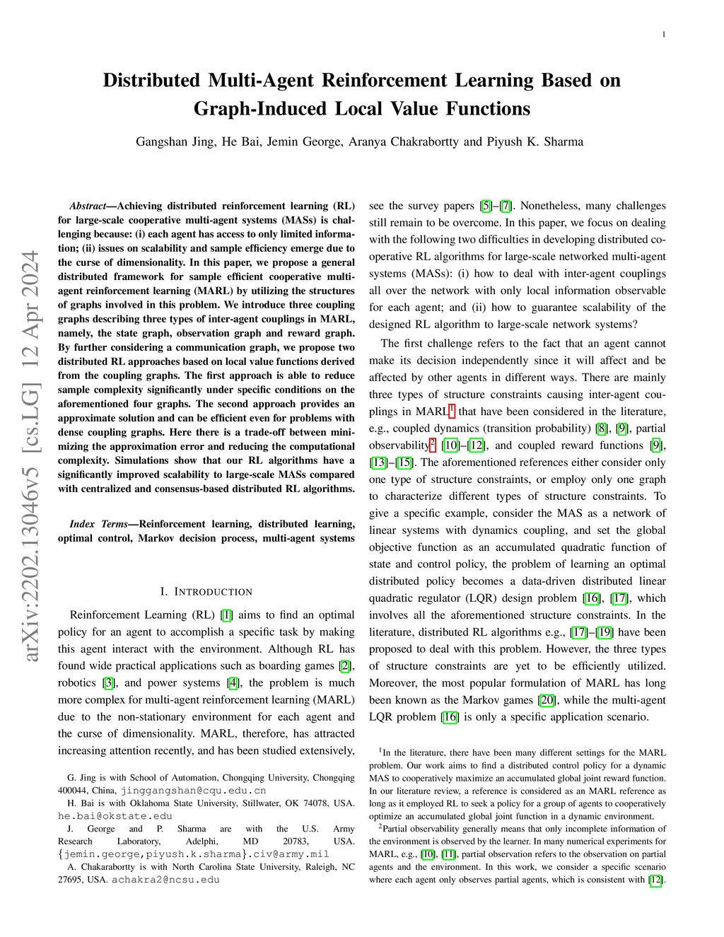 Distributed Multi-Agent Reinforcement Learning Based on Graph-Induced