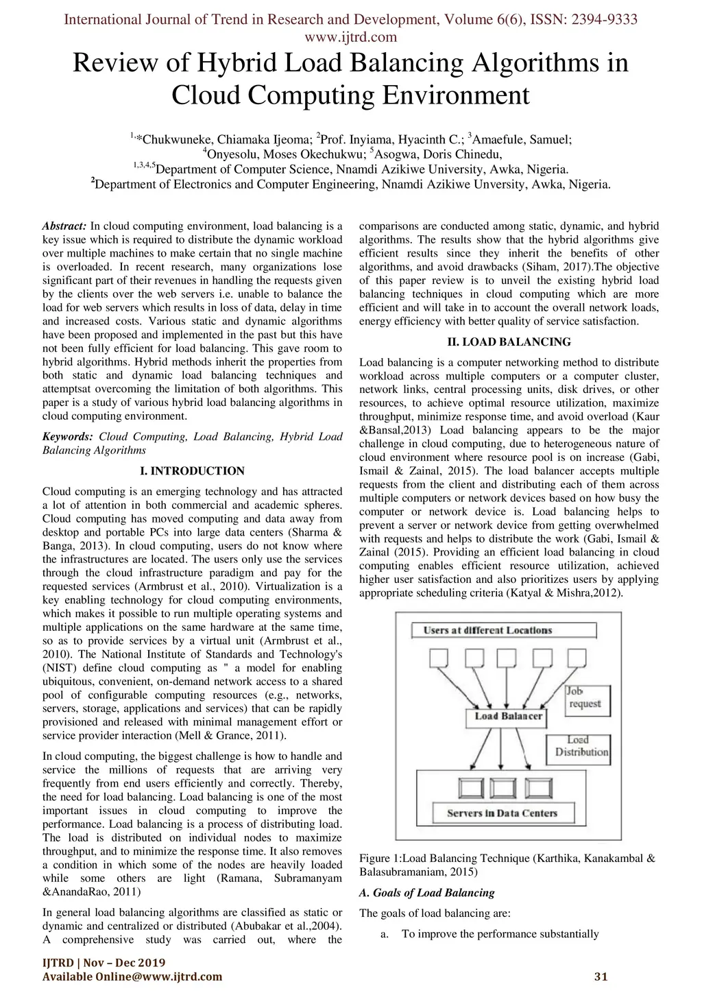 Review of Hybrid Load Balancing Algorithms in Cloud Computing