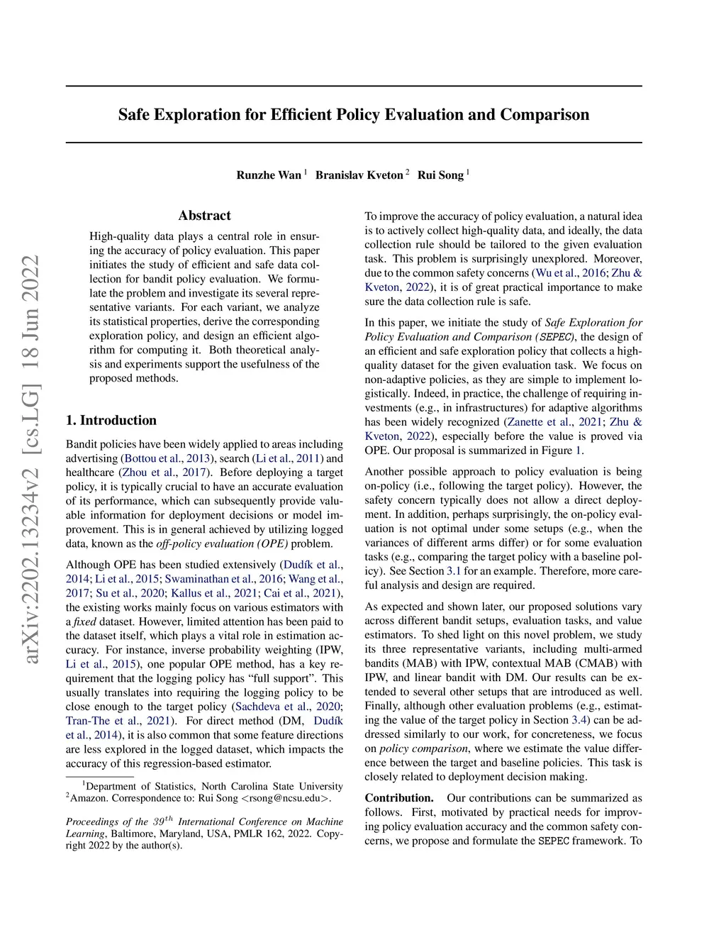 Safe Exploration for Efficient Policy Evaluation and Comparison