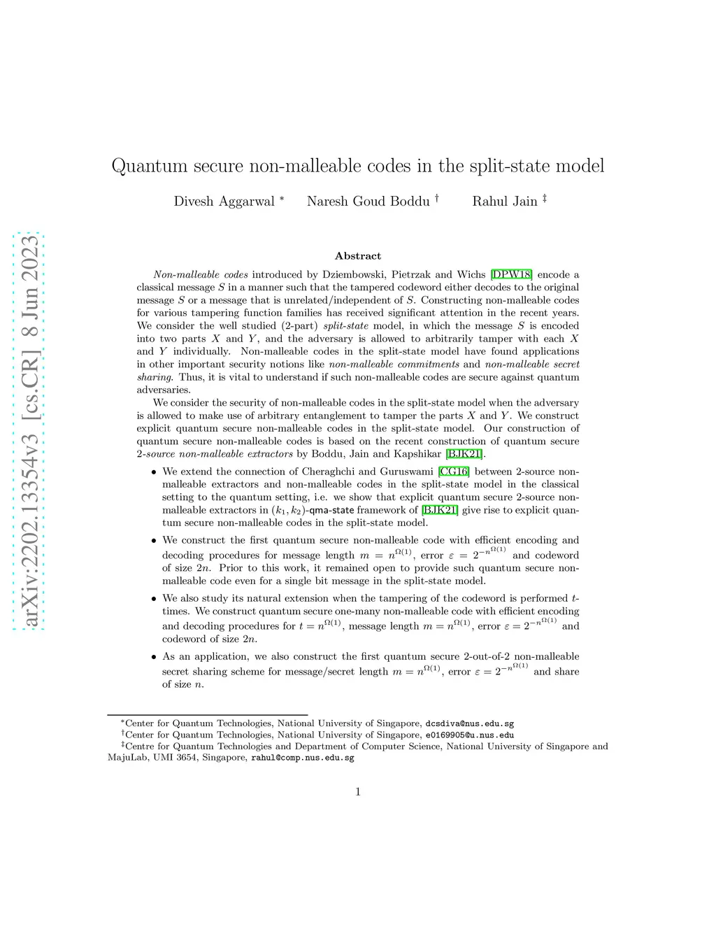 Non-malleable-codes introduced by Dziembowski, Pietrzak and Wichs [DPW18] encode a classical message in a manner such that tampering the codeword results in the decoder either outputting the original message or a message that is unrelated/independent of . Providing such non-malleable security for various tampering function families has received significant attention in recent years. We consider the well-studied (2-part) split-state model, in which the message is encoded into two parts and , and the adversary is allowed to arbitrarily tamper with each and individually. We consider the security of non-malleable-codes in the split-state model when the adversary is allowed to make use of arbitrary entanglement to tamper the parts and . We construct explicit quantum secure non-malleable-codes in the split-state model. Our construction of quantum secure non-malleable-codes is based on the recent construction of quantum secure -source non-malleable-extractors by Boddu, Jain and Kapshikar [BJK21].
