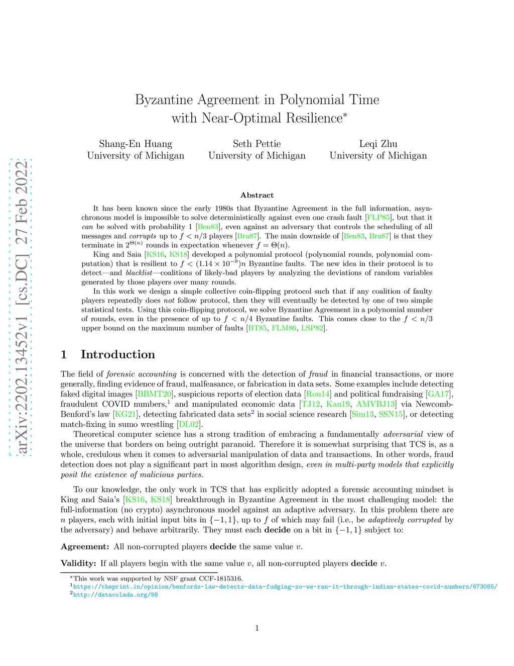 Byzantine Agreement in Polynomial Time with Near-Optimal Resilience