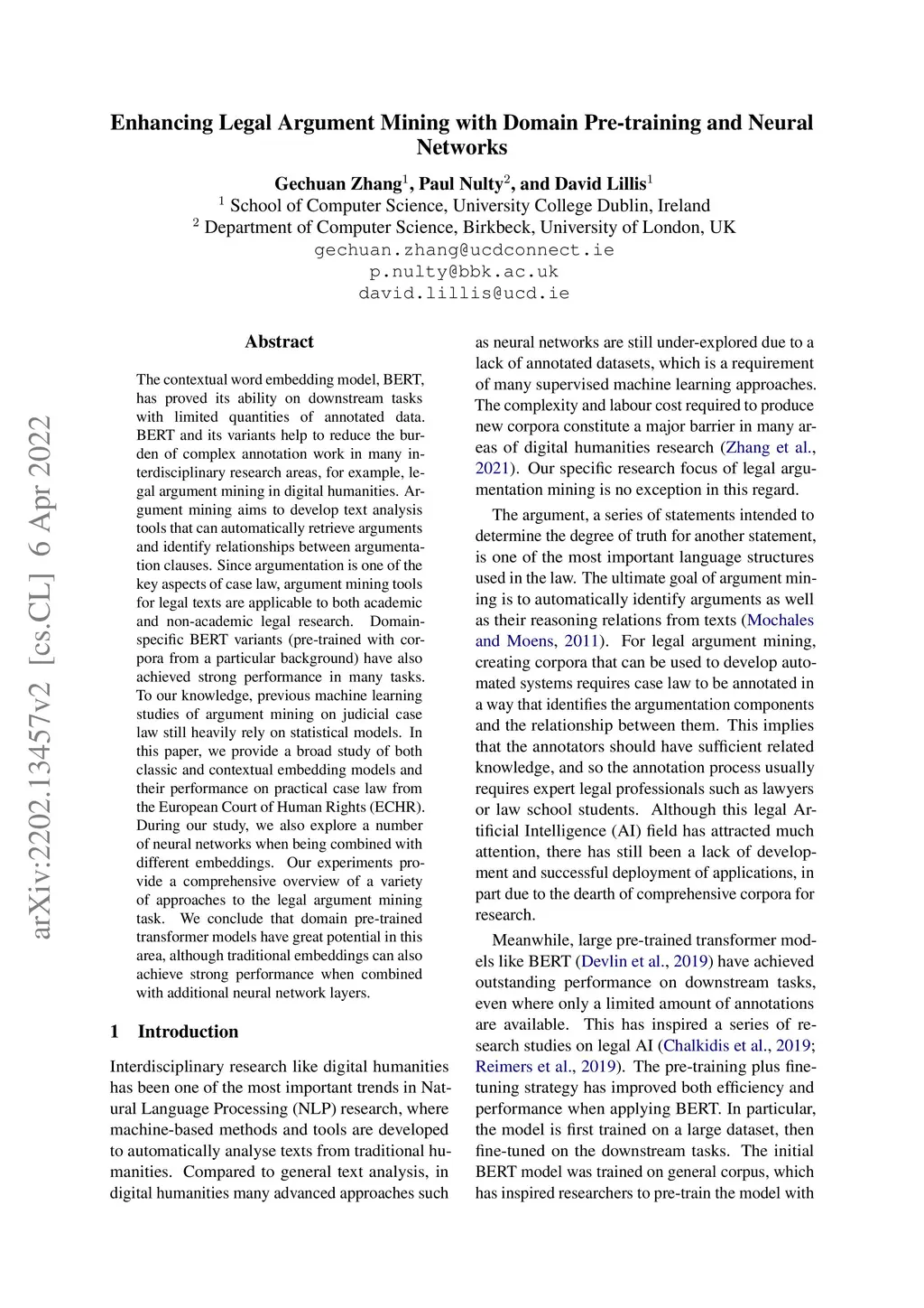 The contextual word embedding model, BERT, has proved its ability on downstream tasks with limited quantities of annotated data. BERT and its variants help to reduce the burden of complex annotation work in many interdisciplinary research areas, for example, legal argument mining in digital humanities. Argument mining aims to develop text analysis tools that can automatically retrieve arguments and identify relationships between argumentation clauses. Since argumentation is one of the key aspects of case law, argument mining tools for legal texts are applicable to both academic and non-academic legal research. Domain-specific BERT variants (pre-trained with corpora from a particular background) have also achieved strong performance in many tasks. To our knowledge, previous machine learning studies of argument mining on judicial case law still heavily rely on statistical models. In this paper, we provide a broad study of both classic and contextual embedding models and their performance on practical case law from the European Court of Human Rights (ECHR). During our study, we also explore a number of neural networks when being combined with different embeddings. Our experiments provide a comprehensive overview of a variety of approaches to the legal argument mining task. We conclude that domain pre-trained transformer models have great potential in this area, although traditional embeddings can also achieve strong performance when combined with additional neural network layers.