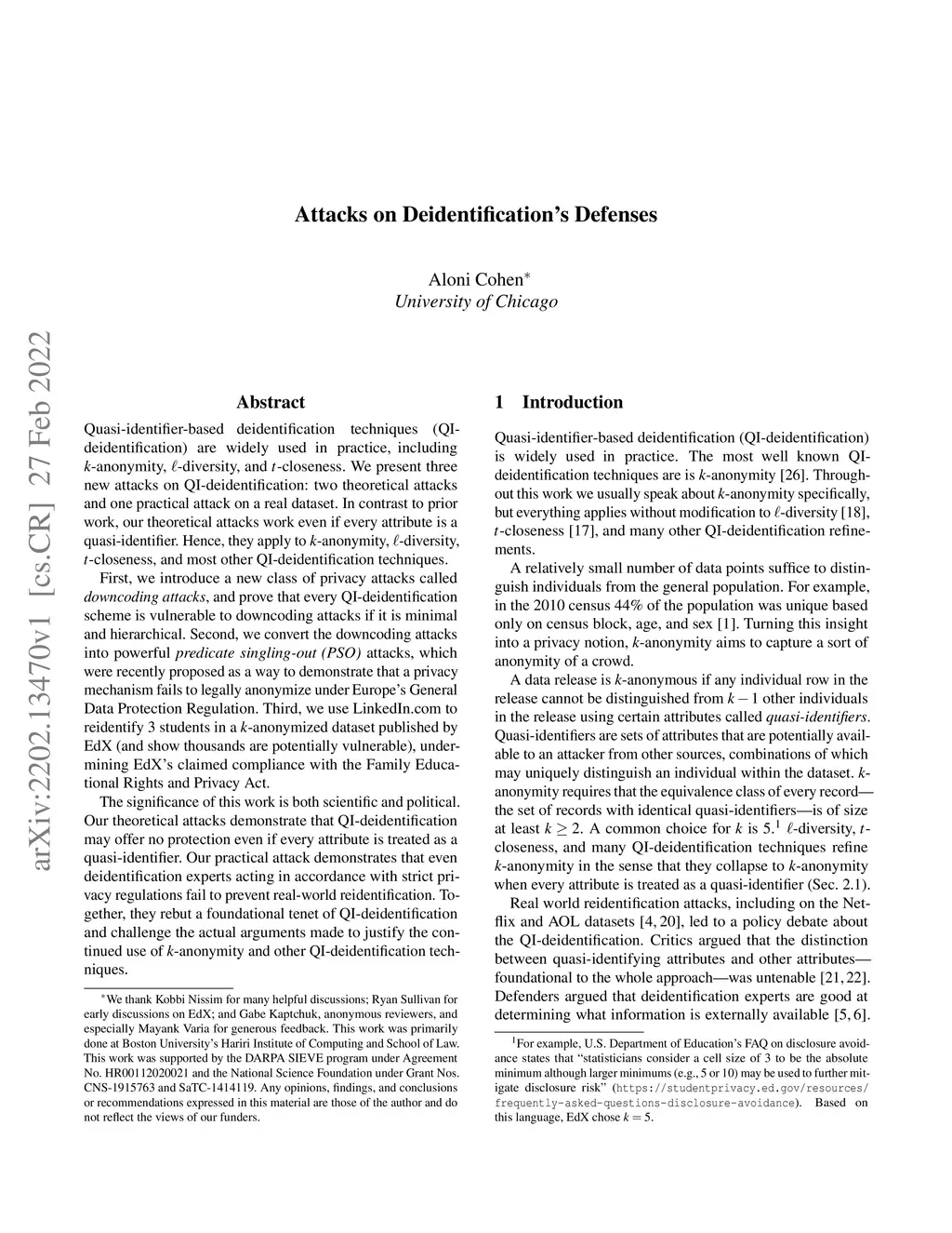 Quasi-identifier-based deidentification techniques (QI-deidentification) are widely used in practice, including -anonymity, -diversity, and -closeness. We present three new attacks on QI-deidentification: two theoretical attacks and one practical attack on a real dataset. In contrast to prior work, our theoretical attacks work even if every attribute is a quasi-identifier. Hence, they apply to -anonymity, -diversity, -closeness, and most other QI-deidentification techniques. First, we introduce a new class of privacy attacks called downcoding attacks, and prove that every QI-deidentification scheme is vulnerable to downcoding attacks if it is minimal and hierarchical. Second, we convert the downcoding attacks into powerful predicate singling-out (PSO) attacks, which were recently proposed as a way to demonstrate that a privacy mechanism fails to legally anonymize under Europe's General Data Protection Regulation. Third, we use LinkedIn.com to reidentify 3 students in a -anonymized dataset published by EdX (and show thousands are potentially vulnerable), undermining EdX's claimed compliance with the Family Educational Rights and Privacy Act. The significance of this work is both scientific and political. Our theoretical attacks demonstrate that QI-deidentification may offer no protection even if every attribute is treated as a quasi-identifier. Our practical attack demonstrates that even deidentification experts acting in accordance with strict privacy regulations fail to prevent real-world reidentification. Together, they rebut a foundational tenet of QI-deidentification and challenge the actual arguments made to justify the continued use of -anonymity and other QI-deidentification techniques.