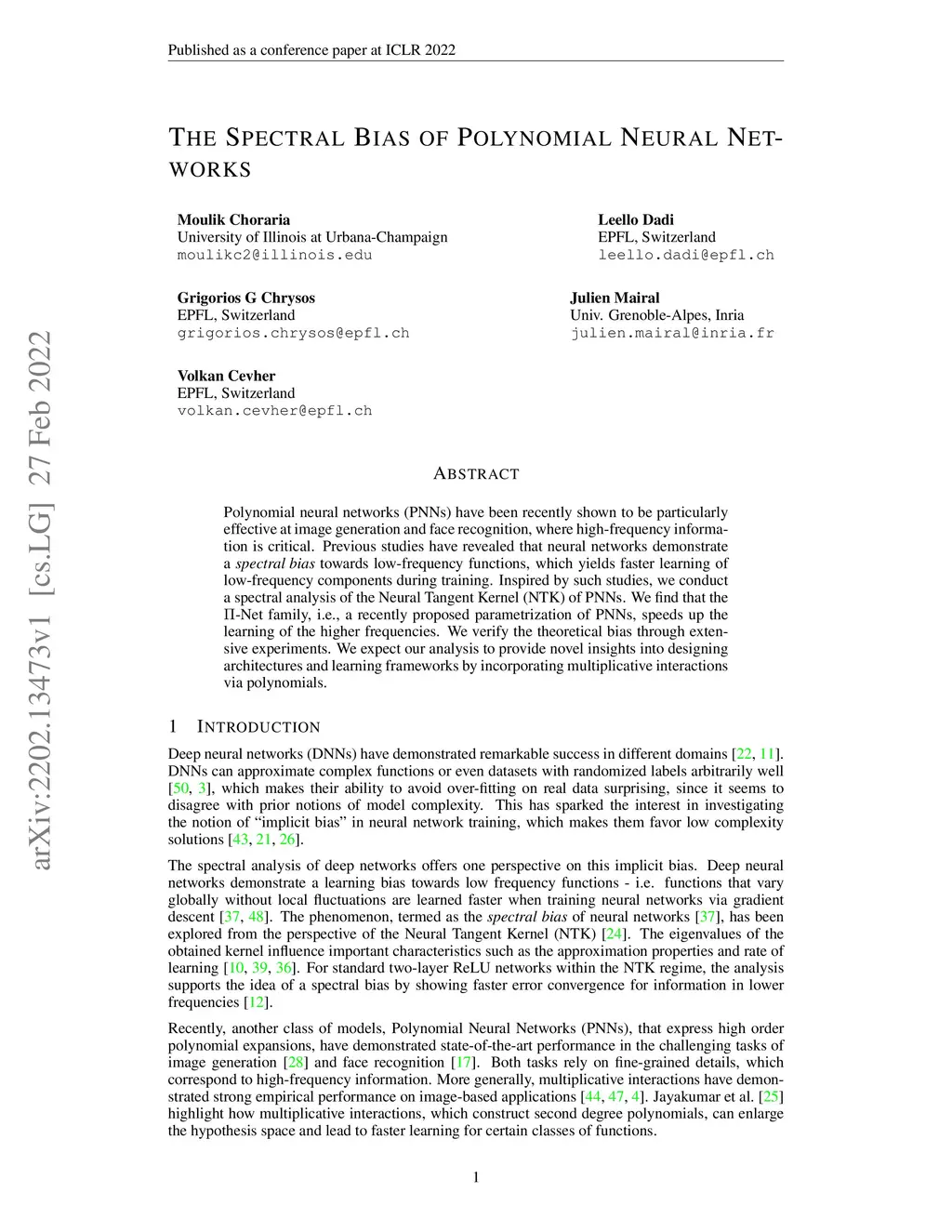The Spectral Bias of Polynomial Neural Networks