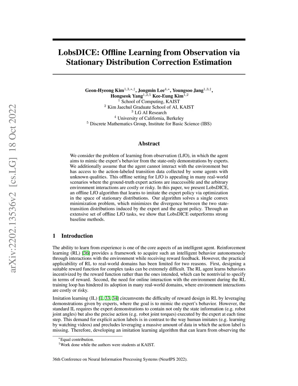 LobsDICE: Offline Learning from Observation via Stationary Distribution