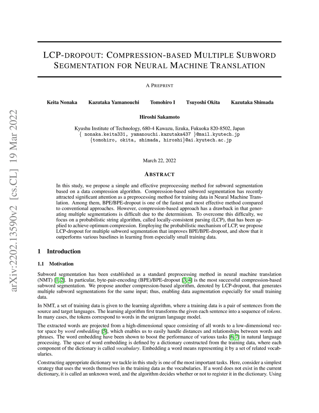 LCP-dropout: Compression-based Multiple Subword Segmentation for Neural