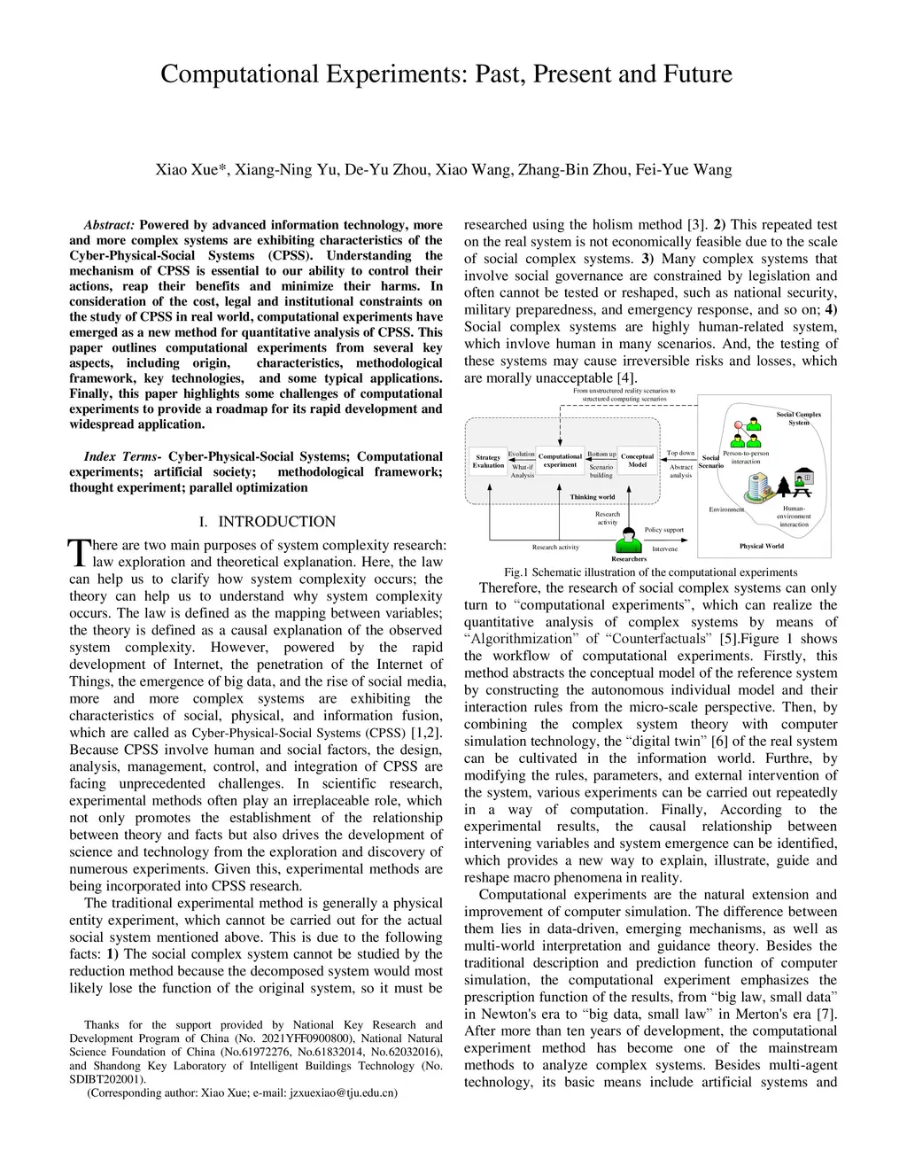 Powered by advanced information technology, more and more complex systems are exhibiting characteristics of the Cyber-Physical-Social Systems (CPSS). Understanding the mechanism of CPSS is essential to our ability to control their actions, reap their benefits and minimize their harms. In consideration of the cost, legal and institutional constraints on the study of CPSS in real world, computational experiments have emerged as a new method for quantitative analysis of CPSS. This paper outlines computational experiments from several key aspects, including origin, characteristics, methodological framework, key technologies, and some typical applications. Finally, this paper highlights some challenges of computational experiments to provide a roadmap for its rapid development and widespread application.