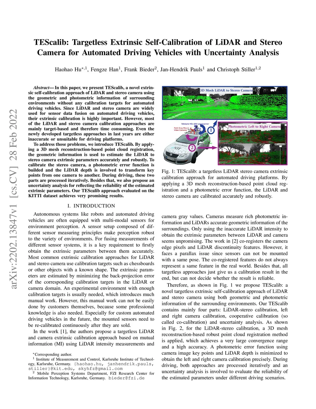 TEScalib: Targetless Extrinsic Self-Calibration of LiDAR and Stereo