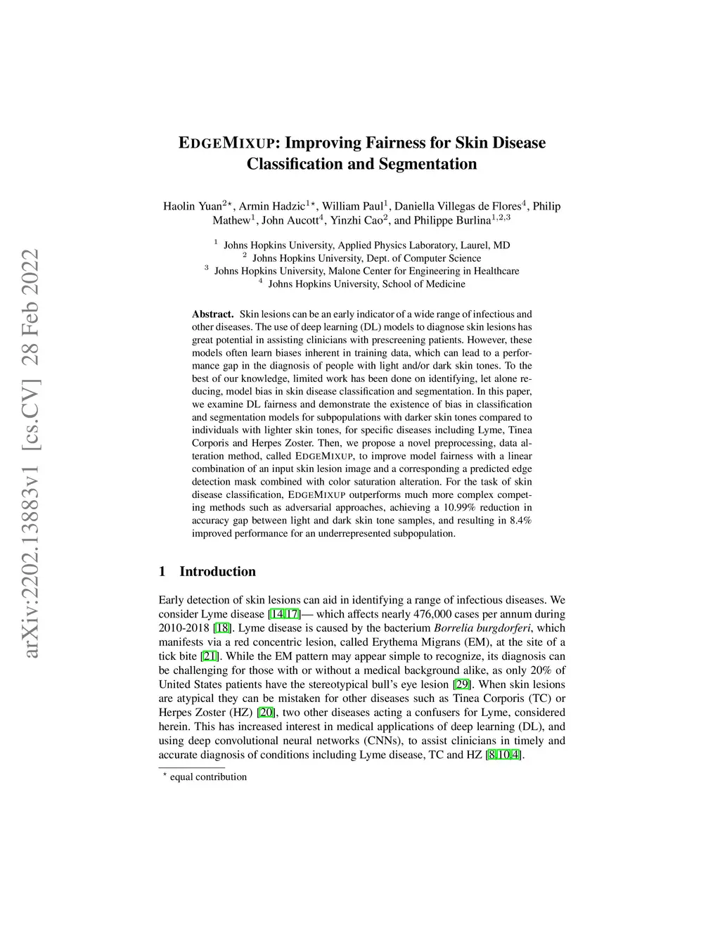 EdgeMixup: Improving Fairness for Skin Disease Classification and