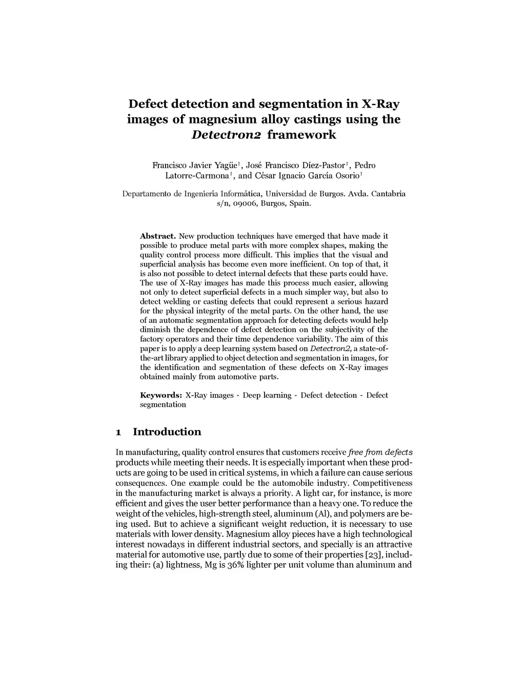 Defect detection and segmentation in X-Ray images of magnesium alloy
