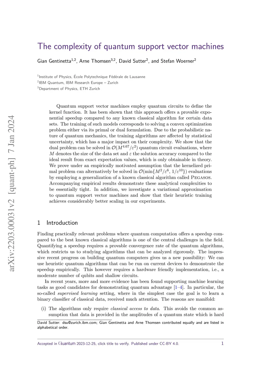 The complexity of quantum support vector machines