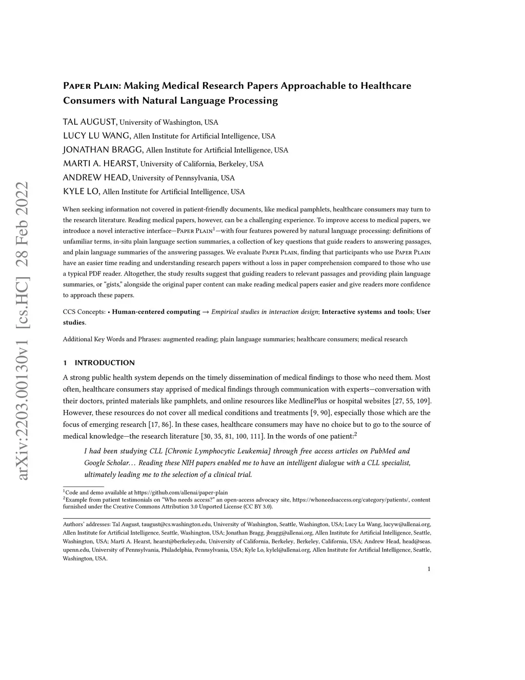 Paper Plain: Making Medical Research Papers Approachable to Healthcare