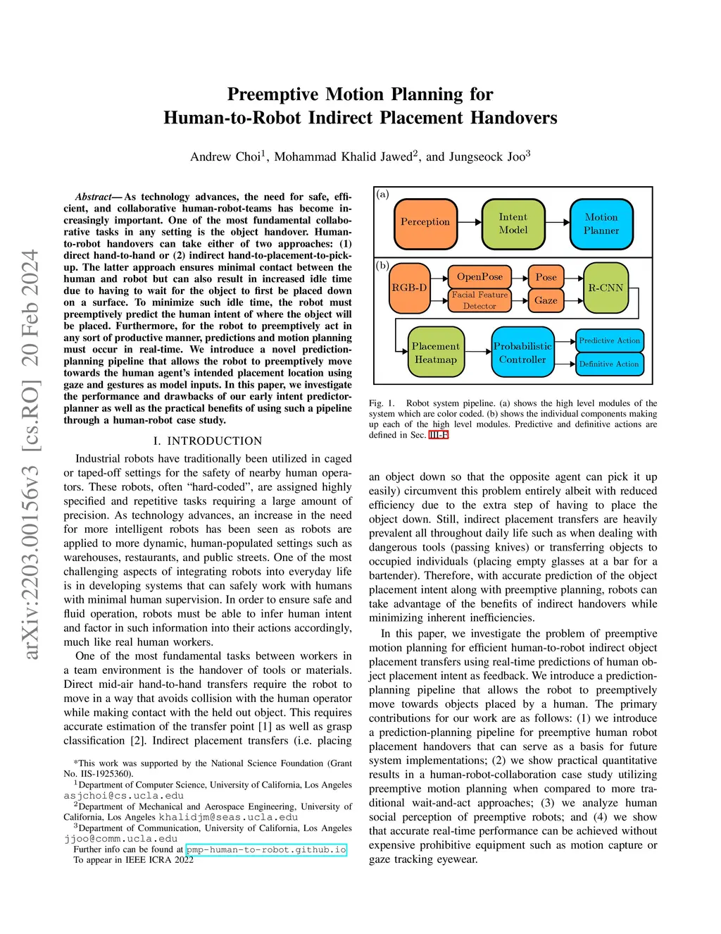 Preemptive Motion Planning for Human-to-Robot Indirect Placement
