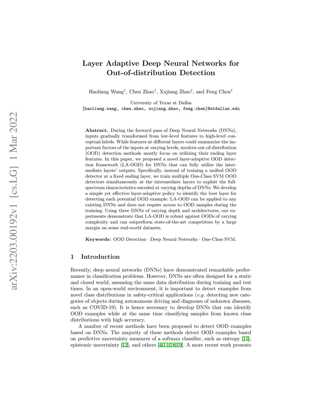 Layer Adaptive Deep Neural Networks for Out-of-distribution Detection