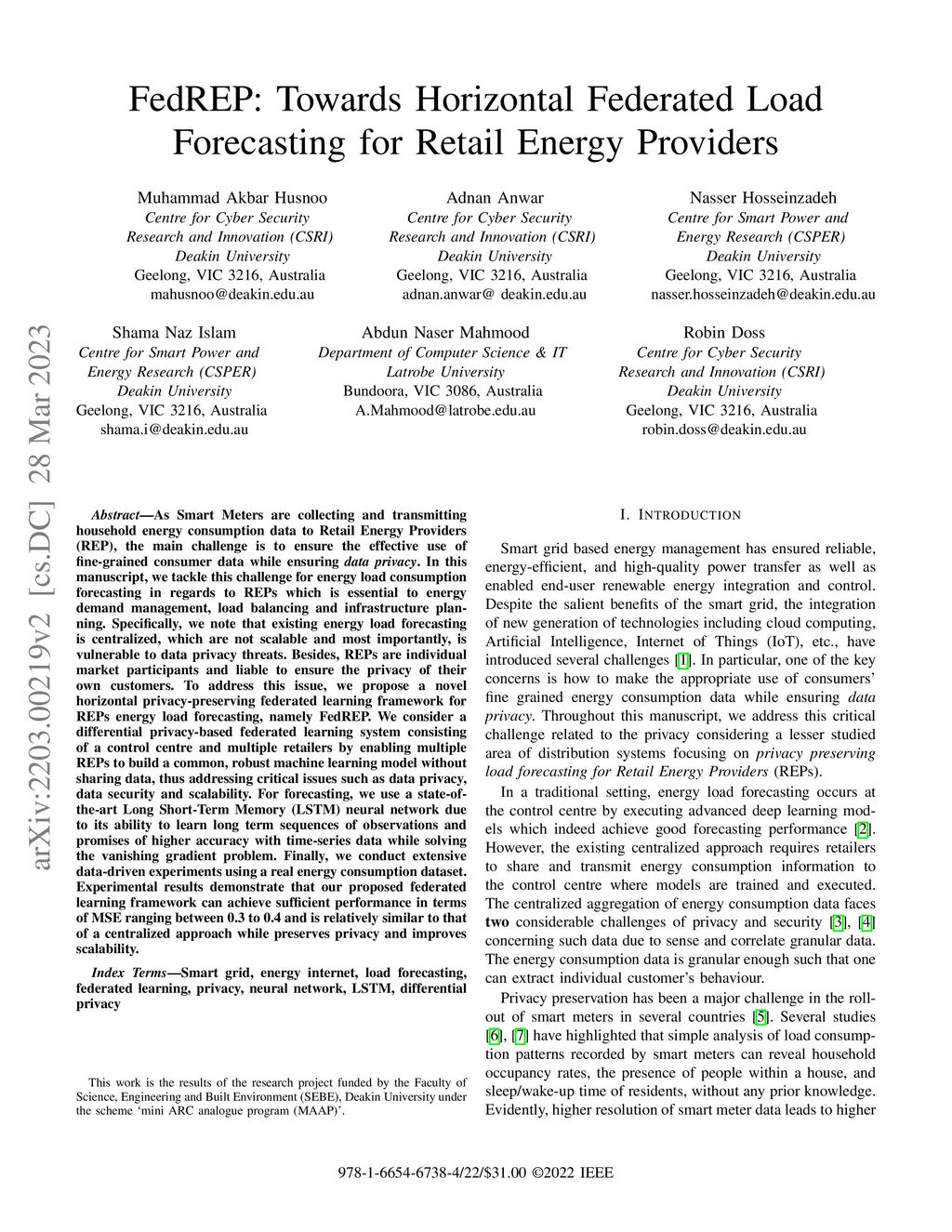 FedREP: Towards Horizontal Federated Load Forecasting for Retail Energy