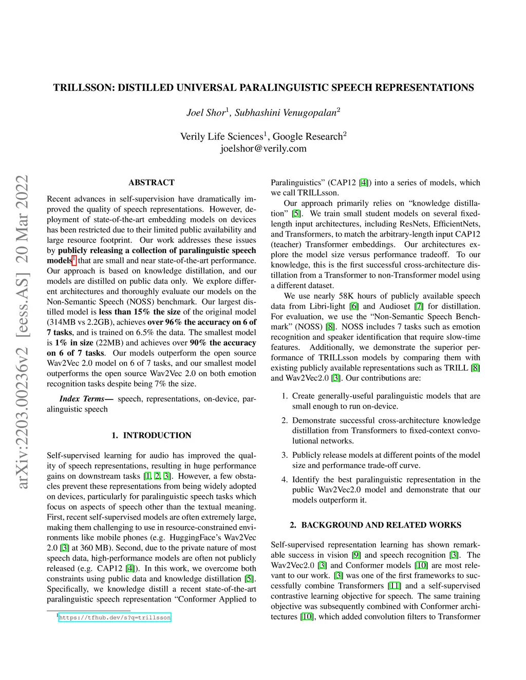 TRILLsson: Distilled Universal Paralinguistic Speech Representations