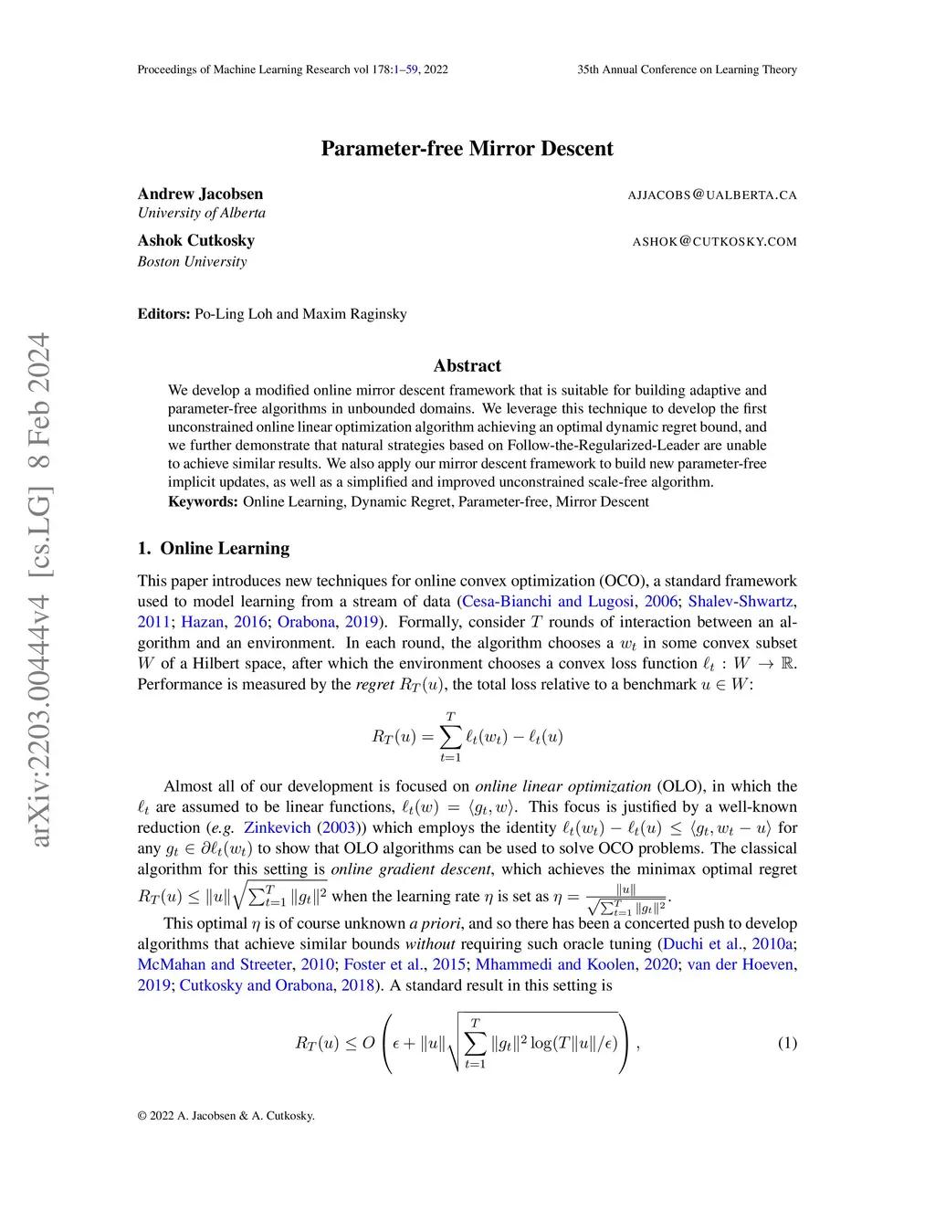 Annual Conference Computational Learning Theory (COLT), 2022
