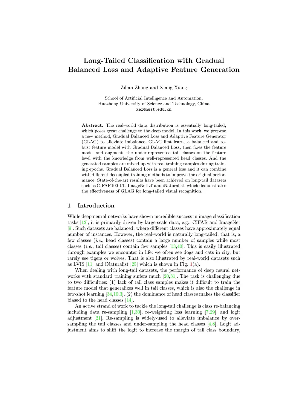 The real-world data distribution is essentially long-tailed, which poses great challenge to the deep model. In this work, we propose a new method, Gradual Balanced Loss and Adaptive Feature Generator (GLAG) to alleviate imbalance. GLAG first learns a balanced and robust feature model with Gradual Balanced Loss, then fixes the feature model and augments the under-represented tail classes on the feature level with the knowledge from well-represented head classes. And the generated samples are mixed up with real training samples during training epochs. Gradual Balanced Loss is a general loss and it can combine with different decoupled training methods to improve the original performance. State-of-the-art results have been achieved on long-tail datasets such as CIFAR100-LT, ImageNetLT, and iNaturalist, which demonstrates the effectiveness of GLAG for long-tailed visual recognition.