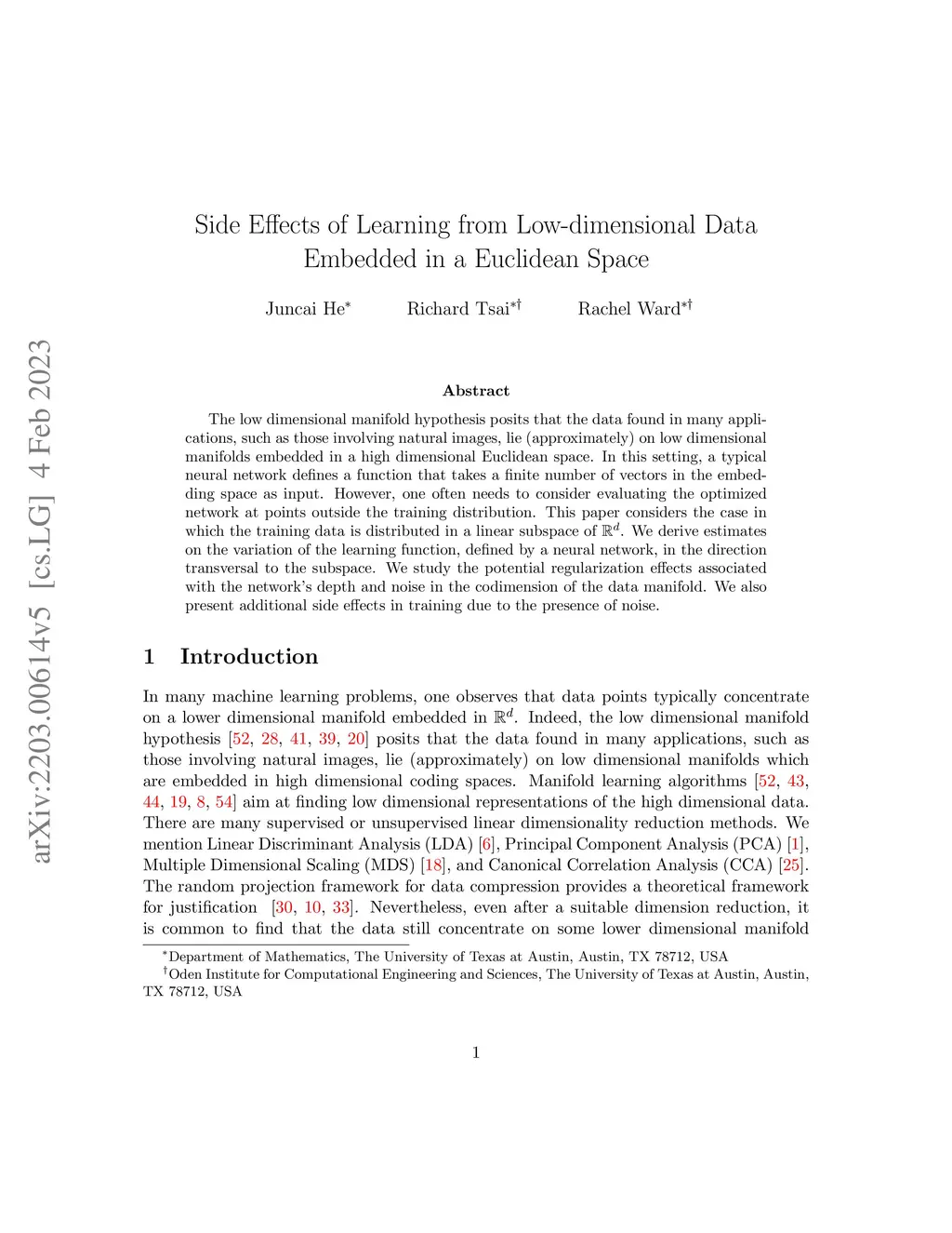 Side Effects of Learning from Low-dimensional Data Embedded in a