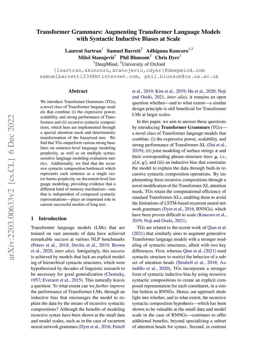 Transformer Grammars: Augmenting Transformer Language Models with