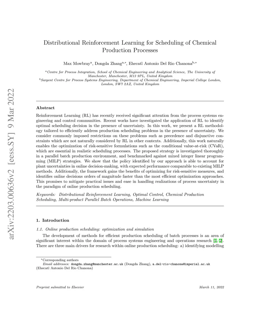 Distributional Reinforcement Learning for Scheduling of Chemical