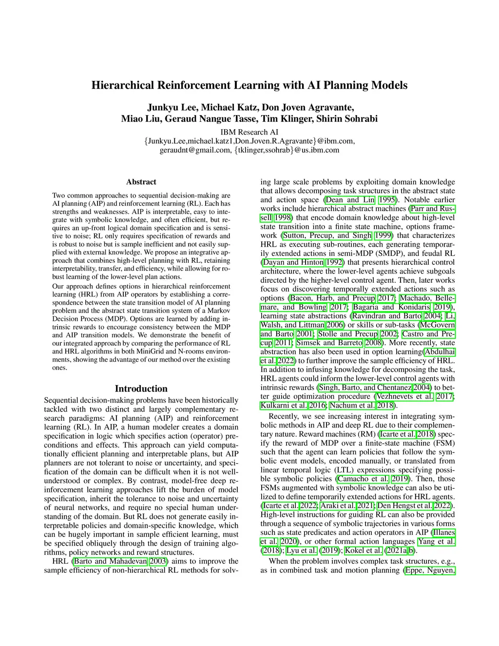 Hierarchical Reinforcement Learning with AI Planning Models