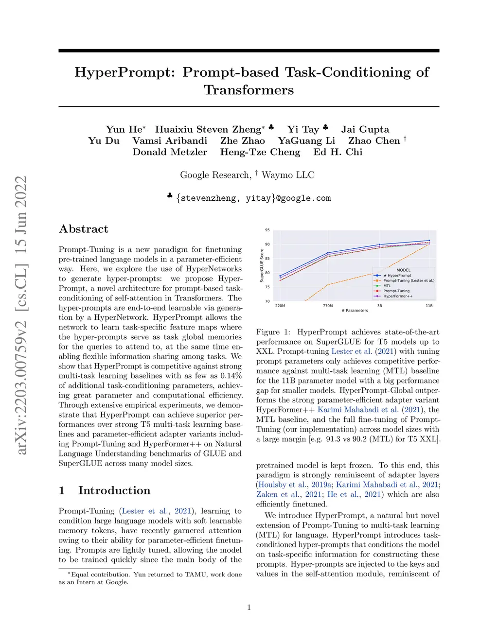 HyperPrompt: Prompt-based Task-Conditioning of Transformers