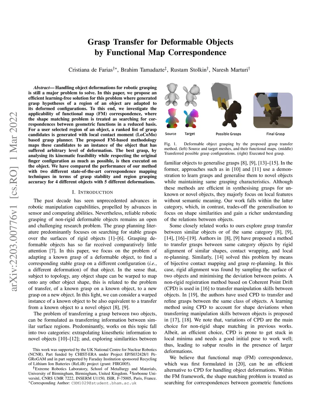 Grasp Transfer for Deformable Objects by Functional Map Correspondence