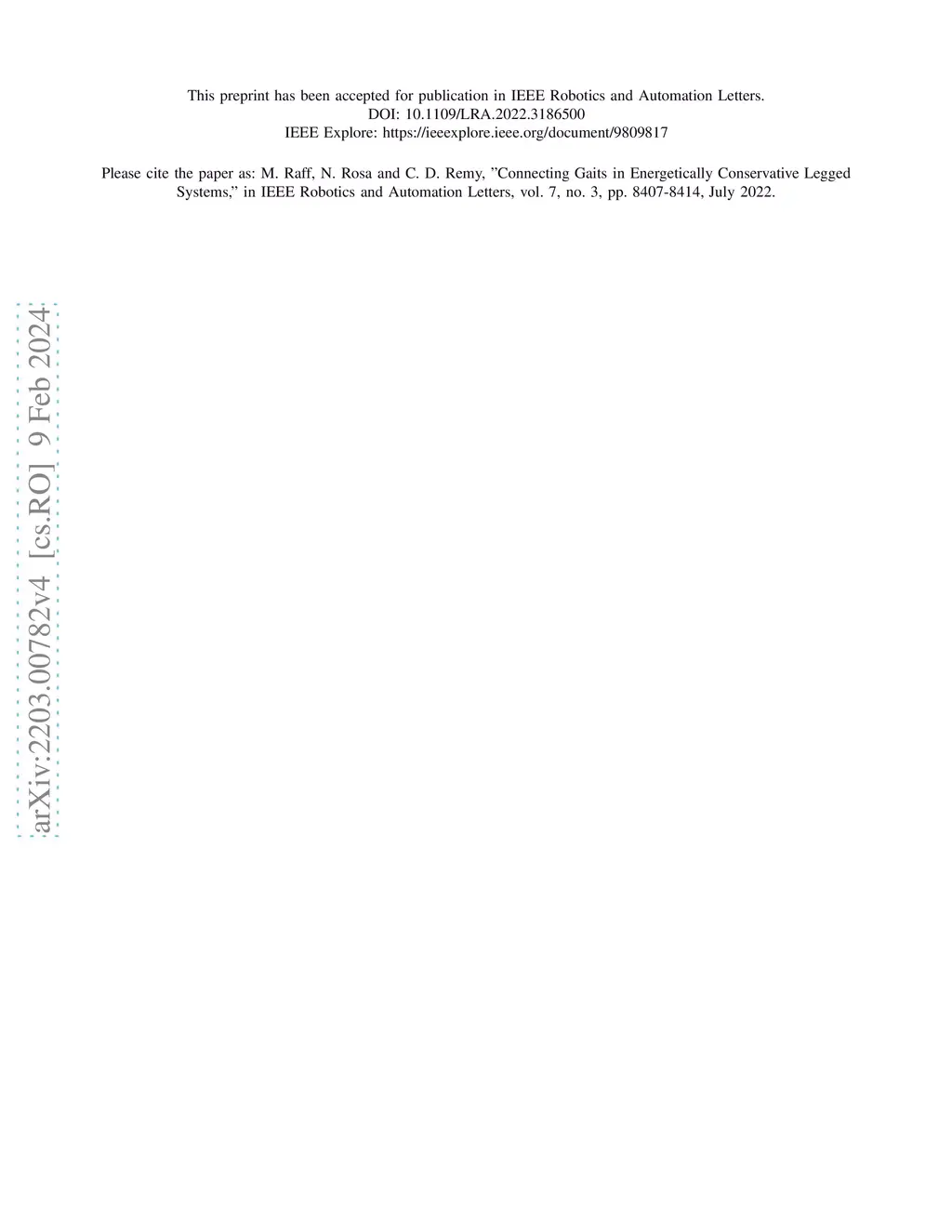 In this work, we present a nonlinear dynamics perspective on generating and connecting gaits for energetically conservative models of legged systems. In particular, we show that the set of conservative gaits constitutes a connected space of locally defined 1D submanifolds in the gait space. These manifolds are coordinate-free parameterized by energy level. We present algorithms for identifying such families of gaits through the use of numerical continuation methods, generating sets and bifurcation points. To this end, we also introduce several details for the numerical implementation. Most importantly, we establish the necessary condition for the Delassus' matrix to preserve energy across impacts. An important application of our work is with simple models of legged locomotion that are often able to capture the complexity of legged locomotion with just a few degrees of freedom and a small number of physical parameters. We demonstrate the efficacy of our framework on a one-legged hopper with four degrees of freedom.