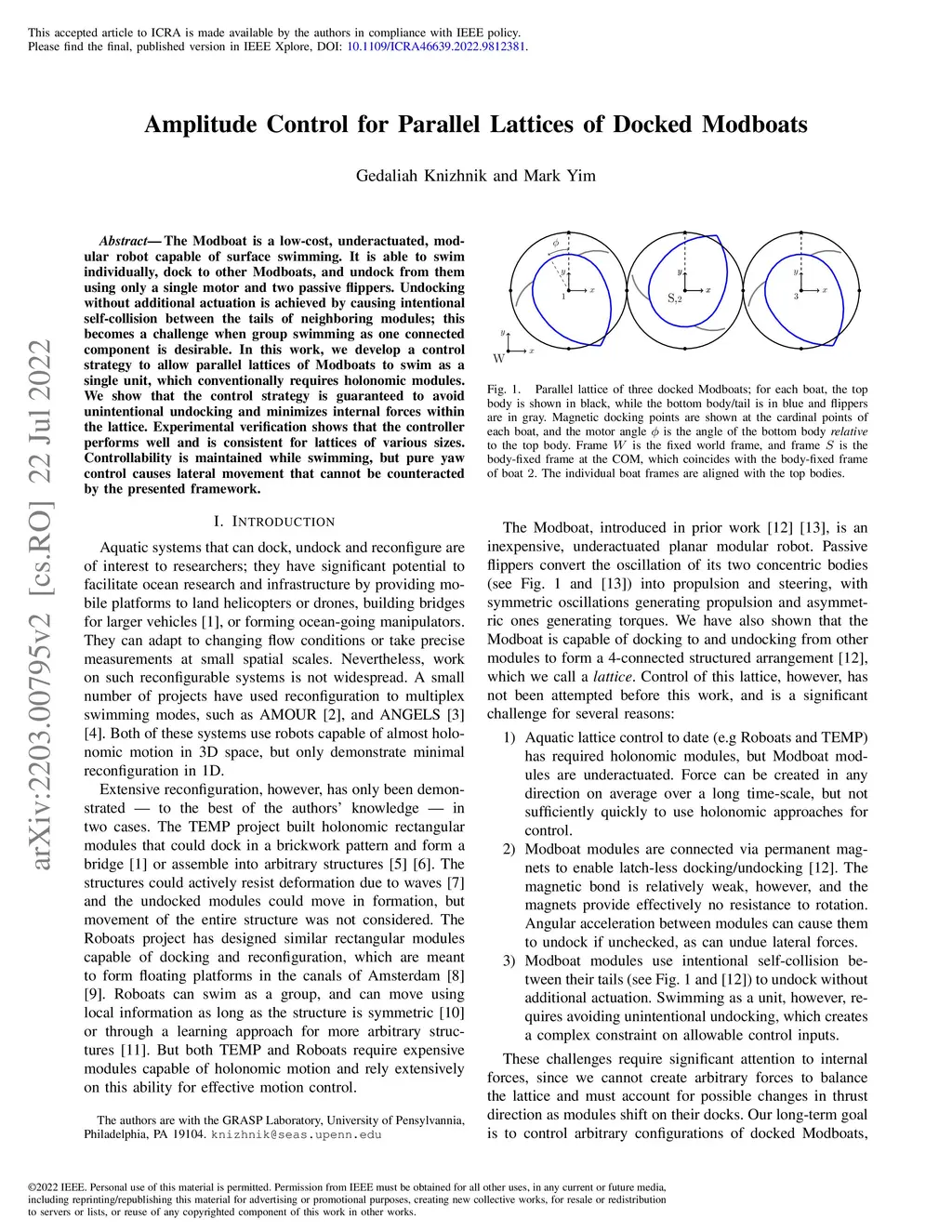 Amplitude Control for Parallel Lattices of Docked Modboats