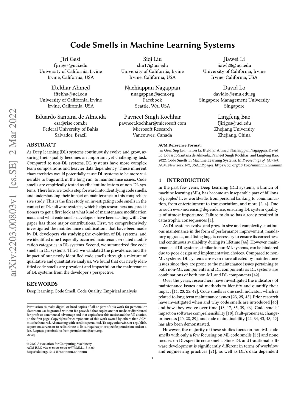 Code Smells in Machine Learning Systems