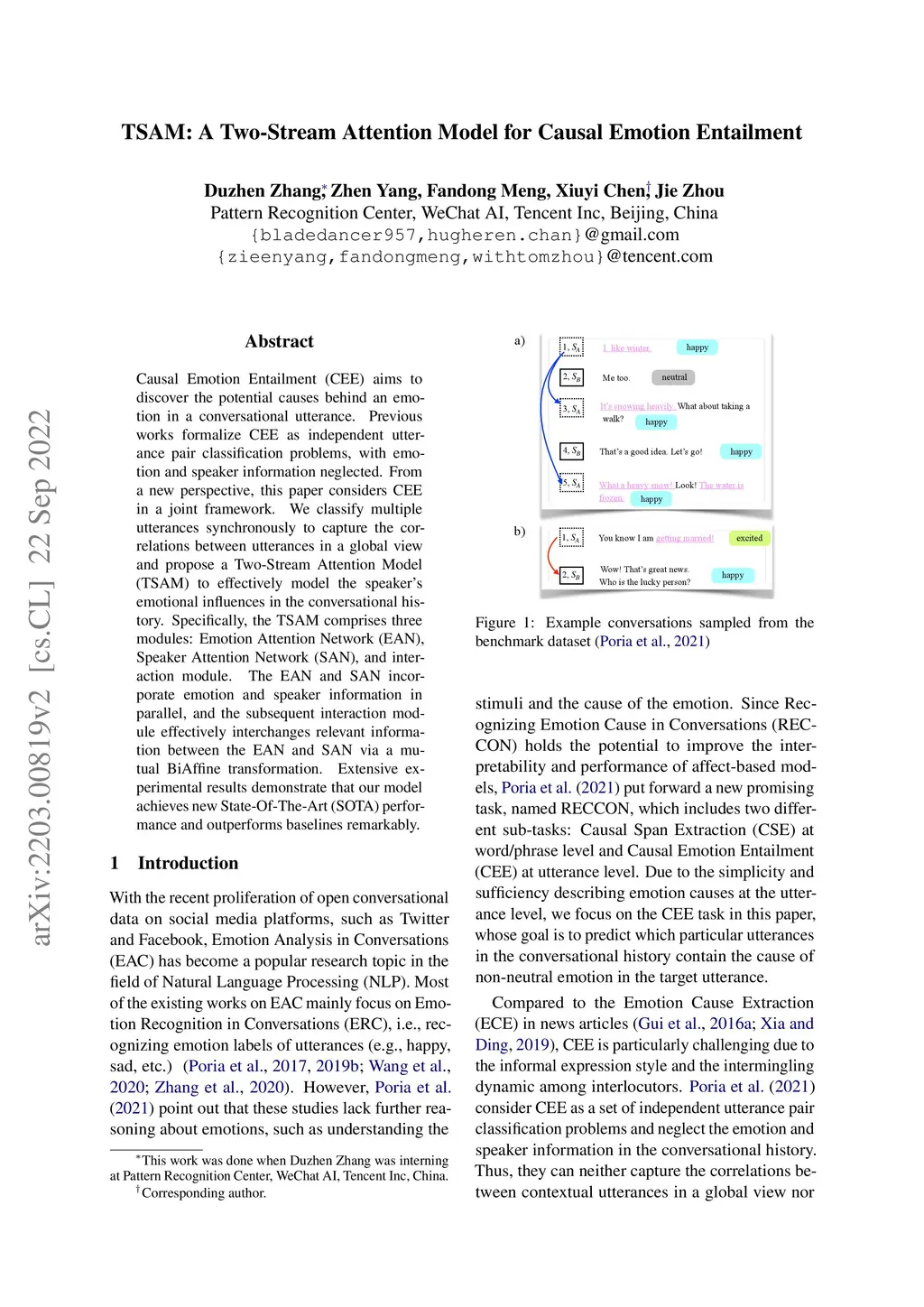 TSAM: A Two-Stream Attention Model for Causal Emotion Entailment