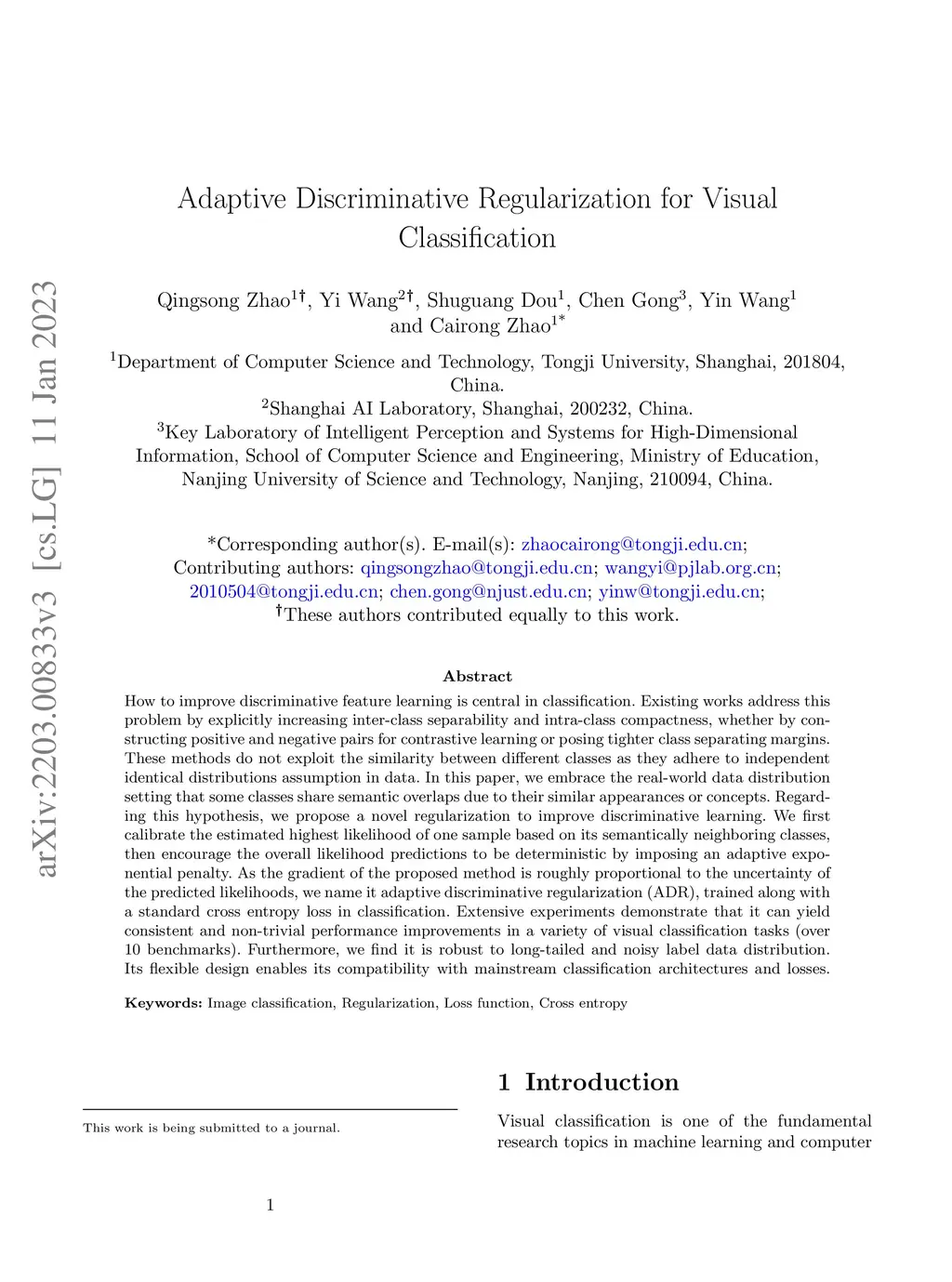 Adaptive Discriminative Regularization for Visual Classification
