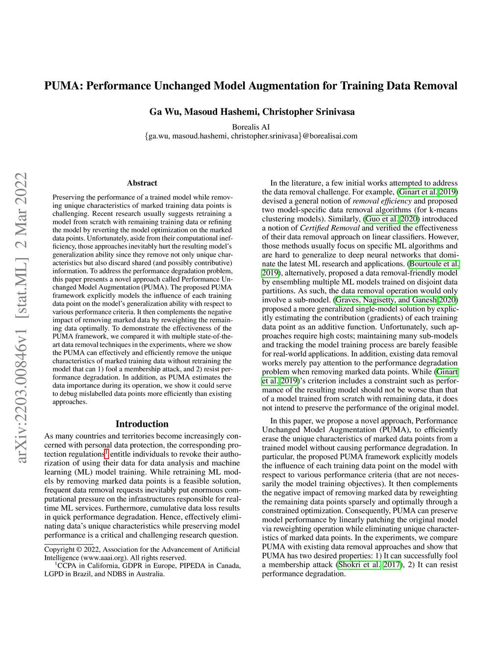 PUMA: Performance Unchanged Model Augmentation for Training Data Removal