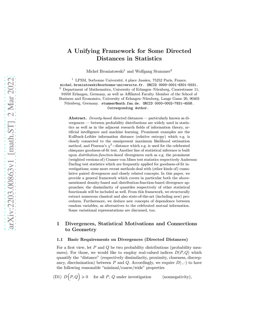 Density-based directed distances -- particularly known as divergences -- between probability distributions are widely used in statistics as well as in the adjacent research fields of information theory, artificial intelligence and machine learning. Prominent examples are the Kullback-Leibler information distance (relative entropy) which e.g. is closely connected to the omnipresent maximum likelihood estimation method, and Pearson's chisquare-distance which e.g. is used for the celebrated chisquare goodness-of-fit test. Another line of statistical inference is built upon distribution-function-based divergences such as e.g. the prominent (weighted versions of) Cramer-von Mises test statistics respectively Anderson-Darling test statistics which are frequently applied for goodness-of-fit investigations; some more recent methods deal with (other kinds of) cumulative paired divergences and closely related concepts. In this paper, we provide a general framework which covers in particular both the above-mentioned density-based and distribution-function-based divergence approaches; the dissimilarity of quantiles respectively of other statistical functionals will be included as well. From this framework, we structurally extract numerous classical and also state-of-the-art (including new) procedures. Furthermore, we deduce new concepts of dependence between random variables, as alternatives to the celebrated mutual information. Some variational representations are discussed, too.